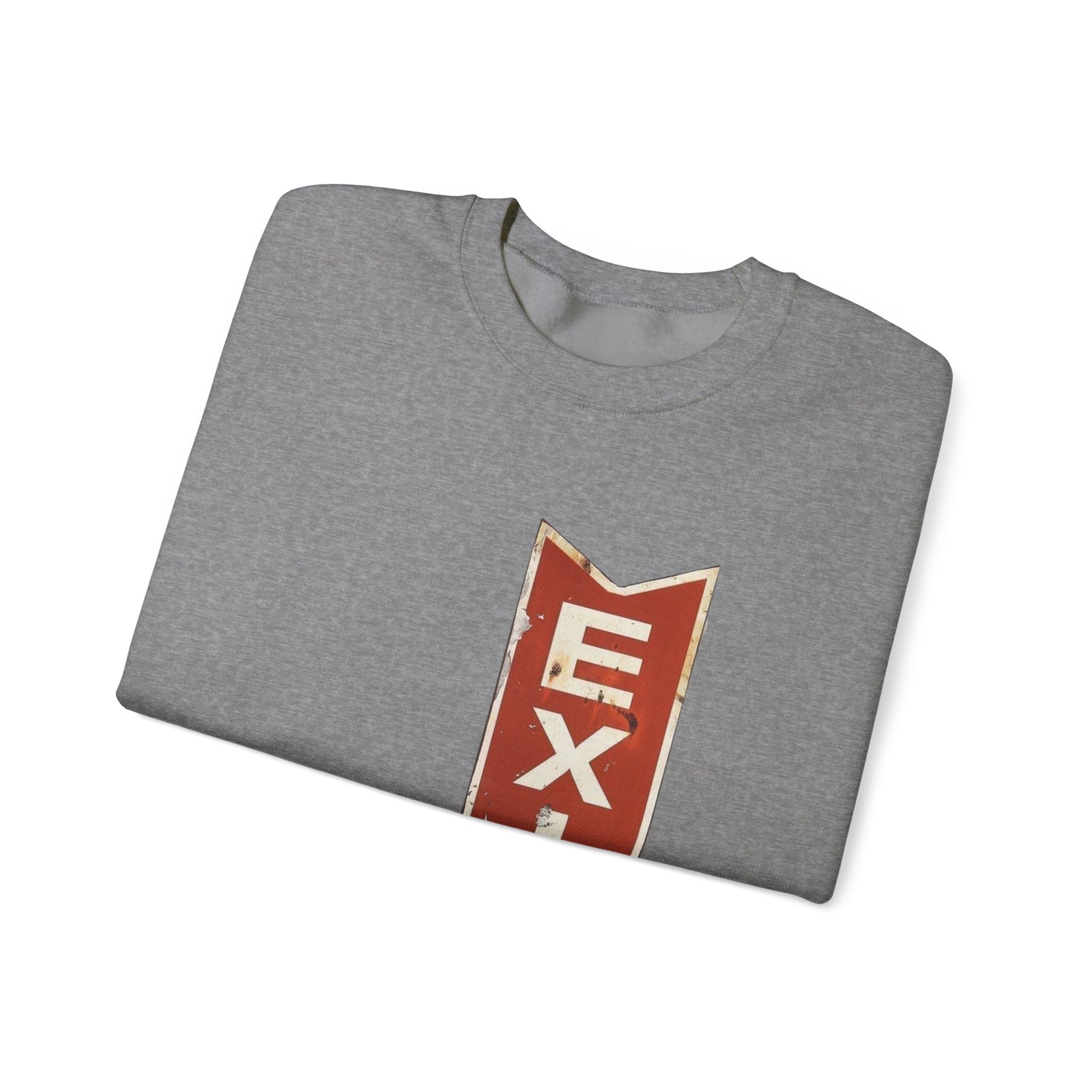 Embrace cozy comfort and effortless style with this Unisex Heavy Blend™ Crewneck Sweatshirt. Designed to be a staple in your wardrobe, it features a clean, classic fit that makes it perfect for layering or wearing on its own. The soft fabric blend of cotton and polyester will keep you warm during chilly days while providing a relaxed feel. Its unique design element—a vintage-inspired EXIT sign—adds a quirky touch, perfect for those who love to express individuality through fashion. Ideal for casual outings, lounging at home, or cozy get-togethers, this sweatshirt complements any laid-back lifestyle. A great gift for friends, family, or anyone who appreciates unique, comfortable attire. Perfect for holidays and occasions like birthdays, friendly gatherings, or just to treat yourself!